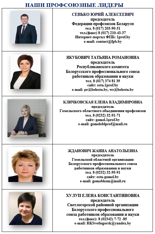 Главный правовой инспектор труда Гомельской областной организации Белорусского профессионального союза работников образования и науки |
