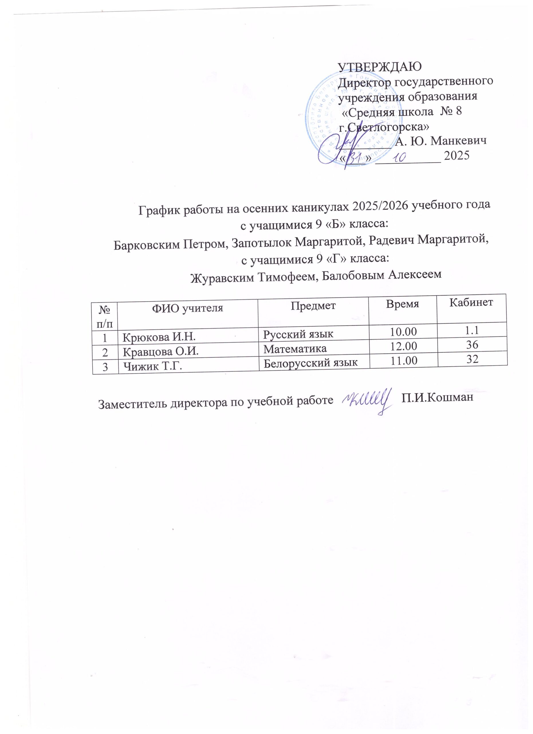 график работы 9Б, 9Г